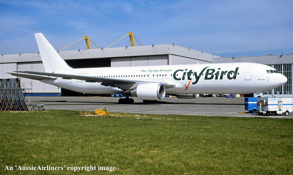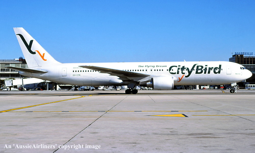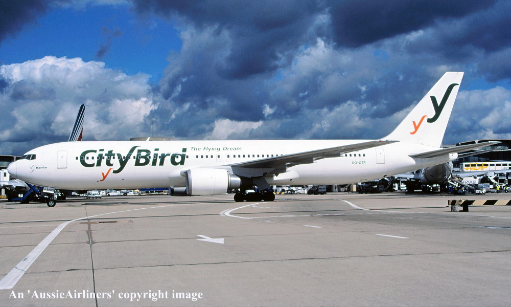 OO-CTR. CityBird - 'Harrier' in the basic livery with additional 'The Flying Dream' titles at Paris Charles de Gualle Airport, September 2000. (C. Laugier Copyright Image 4650-237.) |