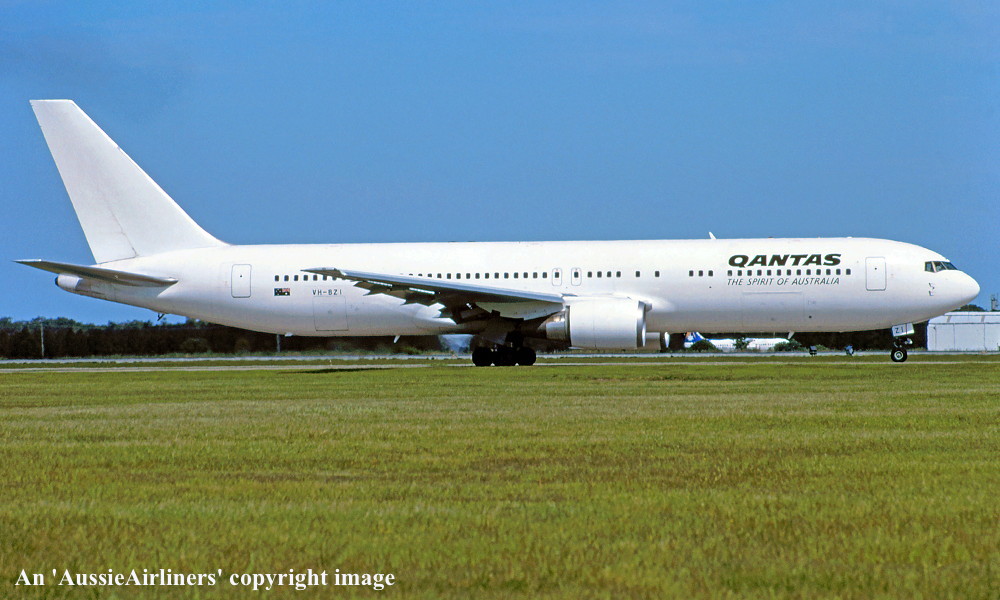 VH-BZI. Qantas The Spirit Of Australia - in the all-white livery at Melbourne Tullamarine Airport, July 2002. (R. N. Smith Collection Copyright Image 4650-259.) |