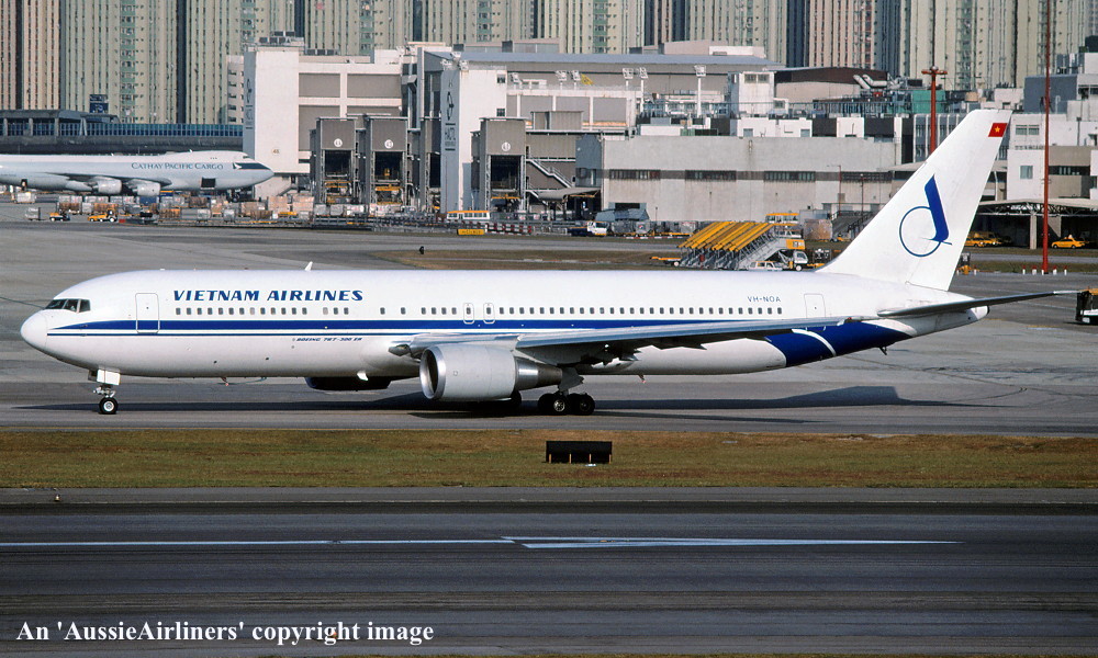 VH-NOA. Vietnam Airlines - in the standard livery at Hong Kong Airport, December 1997. (G. Bennett Collection Copyright Image 4650-703.) |