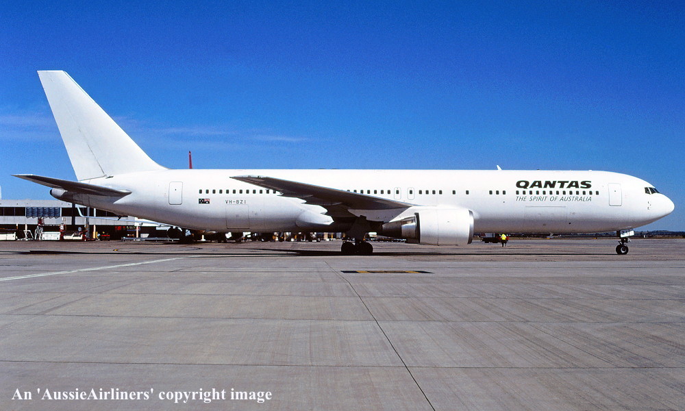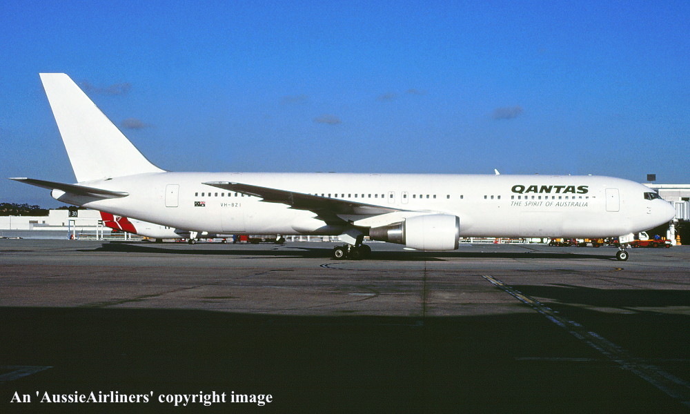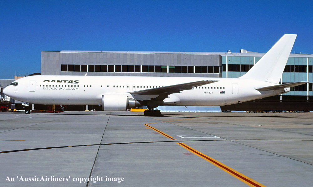 VH-BZI. Qantas The Spirit Of Australia - in the all-white livery at Melbourne Tullamarine Airport, January 2002. (G. Bennett Copyright Image 4650-707.) |