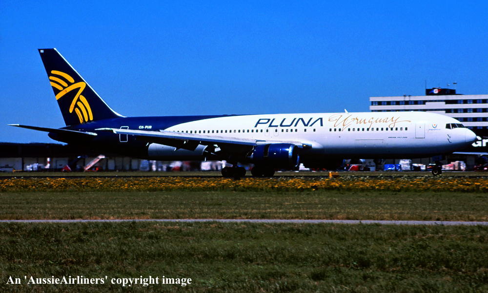 CX-PUB. Pluna Uruguay - in the standard livery at an unknown airport, February 2003. (R. N. Smith Collection Copyright Image 4650-880.) |