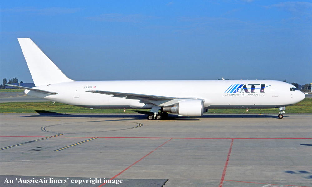 The order for this aircraft was announced by Qantas - March 25, 1988 It was allocated the Boeing Customer Number 'VN084' Rolled off the Boeing production line at Everett - November 01, 1988 First flown as 'N6009F' - November 18, 1988 Powered by General Electric CF6-80C2B6 engines Entered onto the Australian Aircraft Register as VH-OGD - December 05, 1988 Registered to Qantas Airways Ltd, Sydney Accepted by T. Ford for Qantas Airways at Everett (Paine Field) - December 05, 1988 It was the 75th Boeing airliner delivered new to Qantas Airways It was the 11th Boeing 767 delivered to Qantas Departed Everett on the delivery flight to Australia (Captain P. Laing) as QF7634D - December 05, 1988 It arrived at Sydney (Kingsford Smith) on completion of the delivery flight from the United States - December 07, 1988 Delivery route: Seattle (Everett) - Honolulu - Sydney The aircraft carried 'City of Maitland' titles on delivery Operated its first revenue service - December ?, 1988 Registered to NBB Queensland Lease Co. Ltd, Tokyo - March 02, 1989 Leased to Qantas Airways Ltd, Sydney as the registered operator The aircraft was officially named 'City of Maitland' at Sydney - May 02, 1990 It was used as a standby aircraft for Australia Asia Airlines - May 31 to June 20, 1992 Operated for Australia Asia in the basic 'Qantas' livery without titles, logos and aircraft name Returned to standard 'Qantas' livery at Sydney (Kingsford Smith) - June 21, 1992 Operated Vietnam Airlines service Sydney - Ho Chi Minh City - Sydney - November 22 - 23, 1992 Used as a standby aircraft for Australia Asia Airlines - June 04 to June 13, 1993 Operated for Australia Asia in the basic 'Qantas' livery without titles, logos and aircraft name Returned to the standard 'Qantas' livery at Sydney (Kingsford Smith) - June 14, 1993 Operated a charted for Singapore Air Force flying Rockhampton - Sydney - Singapore - November 10, 1993 Operated Air Niugini service Brisbane - Port Moresby - Brisbane as PX004/003 - December 13, 2003 Registered to Qantas Airways Ltd, Sydney - August 05, 2005 Ferried Sydney (Richmond) - Sydney in the new 1997 livery with revised Kangaroo logo as QF6110 - July 22, 2007 Presented to the Press at Sydney (Kingsford Smith) for official launch of the new Corporate image - July 24, 2007 Returned to service Sydney (Kingsford Smith) - Melbourne (Tullamarine) as QF415 - July 25, 2007 Operated its final revenue service Cairns - Sydney (Kingsford Smith) as QF925 - September 12, 2009 Withdrawn from service at Sydney having flown 73,423 hours with 25,893 cycles Ferried Sydney (Kingsford Smith) - Victorville for long term storage as QF6019 - September 16, 2009 Stored at Victorville in the basic 'Qantas' livery without titles Agreement to purchase aircraft was signed by Air Transport Services Group, Wilmington, Delaware - April 22, 2010 The aircraft is to be leased to its subsidiary Cargo Aircraft Management Sold to ATSG / CAM - June 15, 2010 Registration N319CM reserved for ATSG - August 17, 2010 Accepted by ATSG at Victorville, California - September 23, 2010 Cancelled from the Australian Aircraft Register - September 30, 2010 Entered onto the United States Aircraft Register as N319CM - October 01, 2010 Registered to Air Transport Services Group, Wilmington, Delaware, USA Leased to Air Transport International (ATI) as the registered operator Intended for freighter conversion - 2011 It was observed stored at Victorville in the basic 'Qantas' livery as 'N319CM' - December 24, 2010 Ferried Victorville - Wilmington - February 11, 2011 Ferried Wilmington - Tel Aviv for freighter conversion by Bedek Aviation - February 13 - 14, 2011 The aircraft is now designated a Boeing 767-338ER-BDSF (Bedeck Aviation Special Freighter Conversion) It was observed at Tel Aviv undergoing conversion to freighter configuration - March 2011 Ferried Tel Aviv - Bangor - Roswell - August 12 - 13, 2011 It was observed in an 'all-white' livery with large blue 'ATI' titles at Liege - September 25, 2011 It was observed operating with Air Transport International (ATI) - December 2011 Leased to Amerijet International as the registered operator - October 01, 2014 It was observed at San Juan in standard 'Amerijet International' livery - December 24, 2014 Current status - ? |