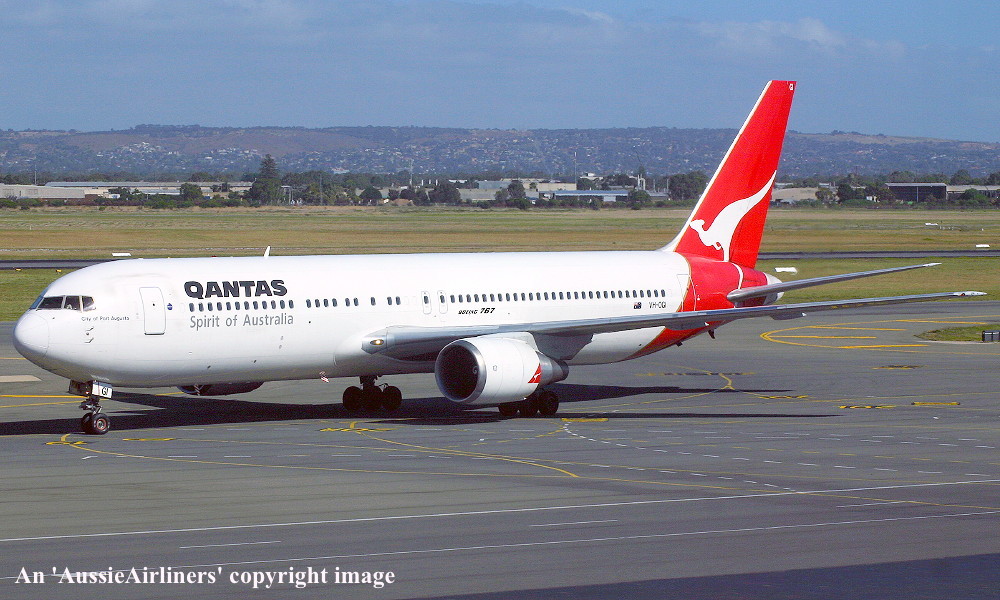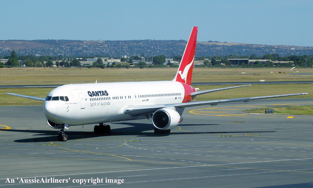 VH-OGI. Qantas Spirit of Australia - 'City of Port Agusta' in the standard livery at Adelaide West Beach Airport, December 23, 2011. (N. K. Daw Copyright Image 4650-402.) |
