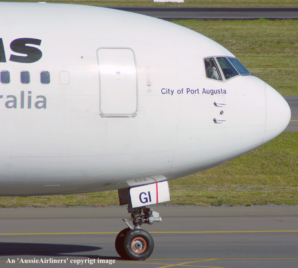 VH-OGI. Qantas Spirit of Australia - 'City of Port Agusta' in the standard livery at Perth Airport, September 11, 2008. (R. N. Smith Collection Copyright Image 4650-778.) |