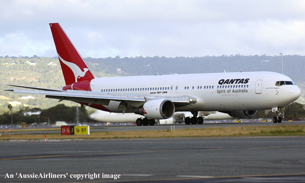VH-OGI. Qantas Spirit of Australia - 'City of Port Agusta' in the standard livery at Perth Airport, February 12, 2013. (R. N. Smith Collection Copyright Image 4650-780.) |