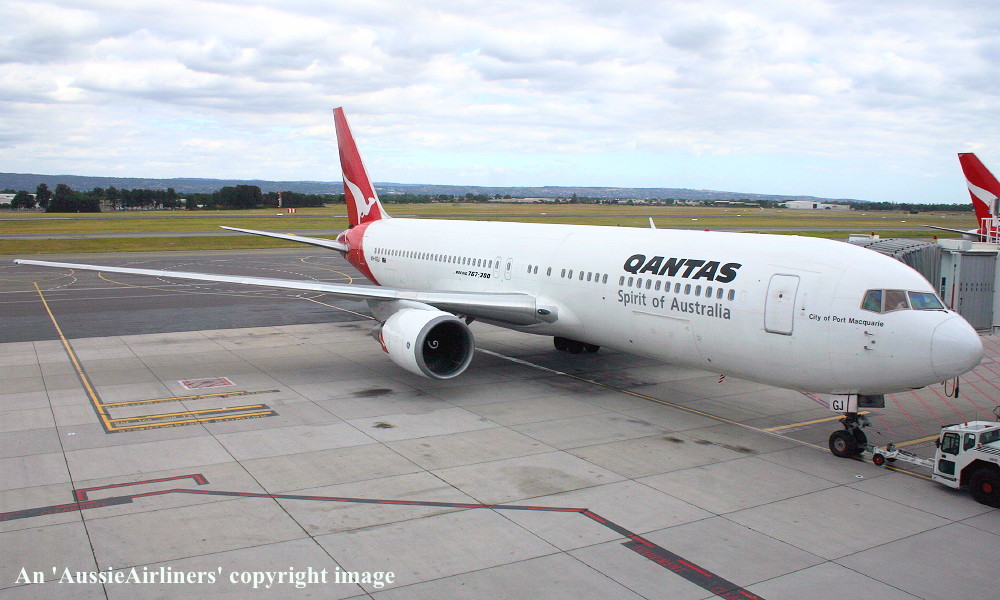 VH-OGJ. Qantas Spirit of Australia - 'City of Port Macquarie' in the standard livery at Adelaide West Beach Airport, December 01, 2011. (N. K. Daw Copyright Image 4650-421.) |