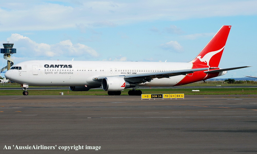 VH-OGR. Qantas Spirit of Australia - 'City of Corowa' in the standard livery at Sydney Kingsford Smith Airport, May 11, 2011. (L. Higgerson Copyright Image 4650-430.) |