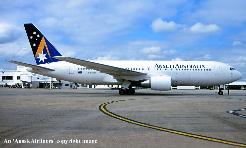 VH-RMO. Ansett Australia - in the 'Starmark' livery at Melbourne Tullamarine Airport, date unknown. (G. Bennett Copyright Image 4650-689.) |