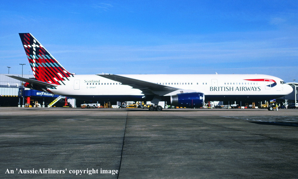 G-BNWF. British Airways - 'City of Milan' in the 'Benyhome' livery at London Heathrow Airport, February 1999. (R. N. Smith Collection Copyright Image 4650-751.) |
