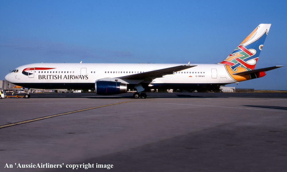 G-BNWK. British Airways - 'City of Amsterdam' in the 'Dove' livery at London Heathrow irport, July 2000. (R. N. Smith Collection Copyright Image 4650-309.) |