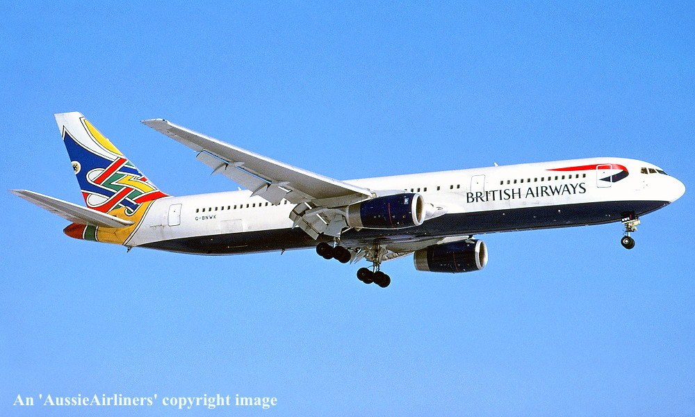 This aircraft was ordered new by British Airways Ltd - ? Rolled off the Boeing production line at Everett (Paine Field) - March 18, 1991 First flown - April 02, 1991 Powered by Rolls Royce RB211-524H engines Entered onto the British Aircraft Register as G-BNWK (CofR G-BNWK/R1) - April 18, 1991 Registered to British Airways PLC, West Drayton, London Accepted by British Airways at Everett (Paine Field) - April 18, 1991 The aircraft was named 'City of Amsterdam' Ferried Everett (Paine Field) - London (Heathrow) on delivery to British Airways - April 19 - 20, 1991 Operated its first revenue service London (Heathrow) - Moscow (Sheremetyevo) - April 22, 1992 It was repainted at Shannon into the 'Column' tail livery - December 21, 1998 Operated its last revenue service Madrid - London (Heathrow) - October 31, 2000 Rolled out at London (Heathrow) in the standard Qantas livery as 'G-BNWK' - November 11, 2000 Flew an acceptance flight London (Heathrow) - London (Heathrow) as G-BNWK - December 22, 2000 Registration marks 'VH-ZXE' were applied to the aircraft - December 23, 2000 Leased to Qantas Airways Ltd, Sydney - December 23, 2000 Cancelled from the British Aircraft Register - December 24, 2000 Entered onto the Australian Aircraft Register as VH-ZXE - December 24, 2000 Registered to Qantas Airways Ltd, Sydney Departed London (Heathrow) on the delivery flight to Australia as QF6016 - December 24, 2000 It arrived at Sydney (Kingsford Smith) on completion of the delivery flight as QF7630 - December 26, 2000 Delivery route: London - Bangkok - Sydney Operated its first Qantas revenue service Sydney - Melbourne (Tullamarine) as QF417 - December 27, 2000 Registered to G-BNWK Aircraft Pty Ltd - May 02, 2006 Leased to Qantas Airways Ltd, Sydney as the registered operator Registered to Qantas Airways Limited, Sydney - June 21, 2012 Operated its final revenue service Melbourne (Tullamarine) - Sydney (Kingsford Smith) as QF494 - December 04, 2013 Withdrawn from use at Sydney (Kingsford Smith) This was the last ex British Airways Rolls-Royce powered Boeing 767s in the Qantas fleet It was observed hangared at Sydney with all the 'Qantas' titles and logos removed - December 07, 2013 Departed Sydney (Kingsford Smith) on the ferry flight to the United States as QF6023 - December 10, 2013 It arrived at Kansas City on completion of the ferry flight - December 10, 2013 Ferry route: Sydney - Honolulu - Kansas City Sold to Jet Midwest Group, Kansas City - December 12, 2013 Cancelled from the Australian Aircraft Register - December 17, 2013 The aircraft had flown 55,122 hours with 33,764 cycles Entered onto the United States Aircraft Register as N740JM - February 13, 2014 Registered to Jet Midwest Group LLC, Wilmington It was observed stored in good condition at Kansas City in the basic 'Qantas' livery - October 28, 2014 Sold to Jet Midwest Global LLC, Salt Lake City - March 02, 2015 Registered to KMW Leasing X LLC, Salt Lake City, Utah - March 06, 2015 Leased to Eastern Airlines LLC, Greensborough, North Carolina - March 15, 2016 It was reregistered as N703KW - April 12, 2018 Registered to Eastern Airlines LLC, Greensborough, North Carolina Operated its first Eastern Airlines service - June 16, 2018 Current status - ? |