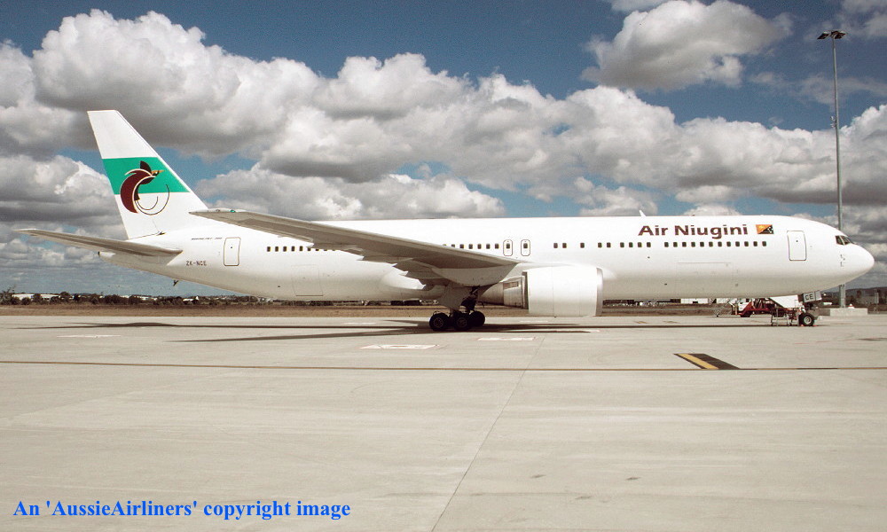 ZK-NCE. Air Niugini - in the standard livery at Brisbane Airport, April 2003. (R. N. Smith Collection Copyright Image 4655-006.) |