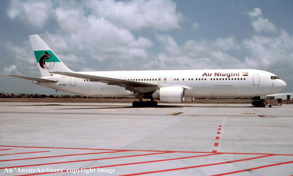 P2-ANG. Air Niugini - in the standard livery at Brisbane Airport, October 2003. (R. N. Smith Collection Copyright Image 4655-009.) |