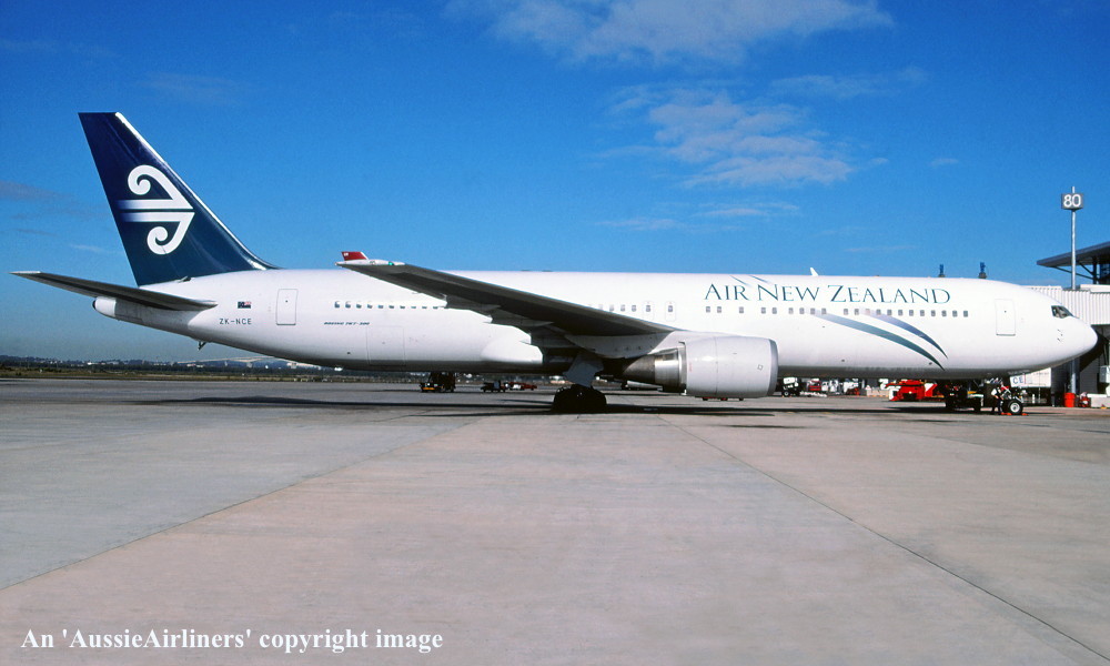 ZK-NCE. Air New Zealand - in the basic 'all-white' livery at Sydney Kingsford Smith Airport, May 2002. (R. N. Smith Copyright Image 4655-106.) |