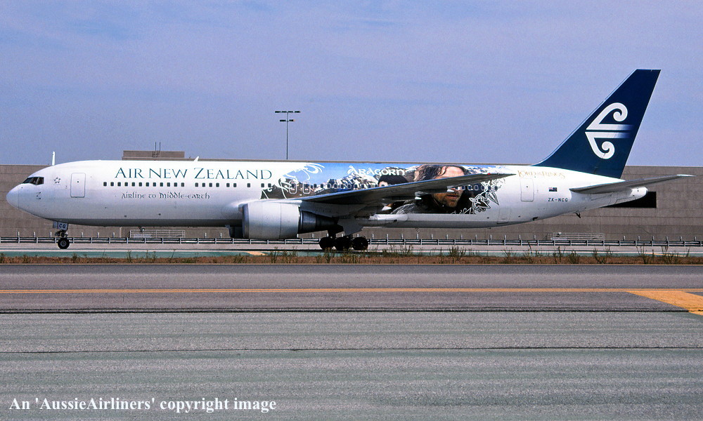 ZK-NCG. Air New Zealand - in the 'Lord of the Rings' livery at Los Angeles Airport, October 2003. (R. N. Smith Collection Copyright Image 4655-086.) |