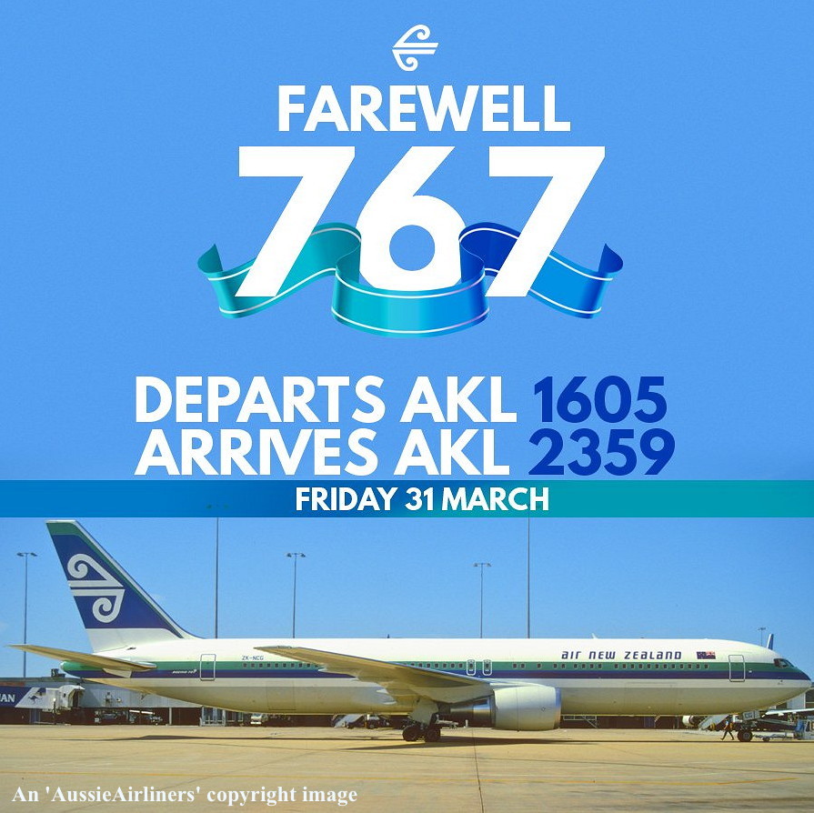 ZK-NCI. Air New Zealand - promotional image to mark the final flight of an Air New Zealand Boeing 767, March 31, 2017. (Air New Zealand Copyright Image 4655-142.) |