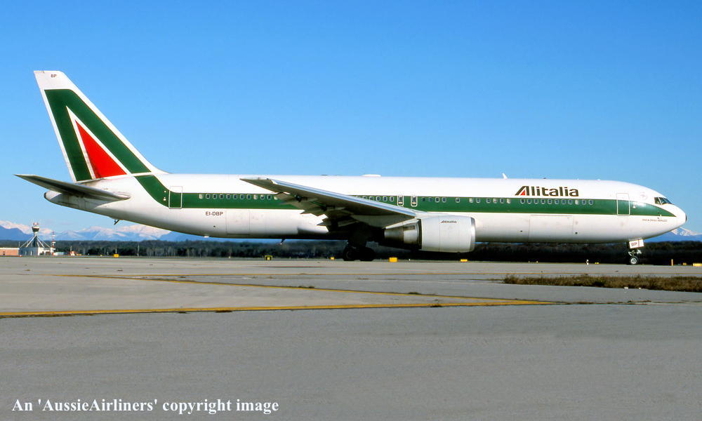 EI-DBP. Alitalia - 'Duca Degli Abruzzi' in the standard livery at Milan Airport, October 2003. (R. N. Smith Collection Copyright Image 4650-218.) |