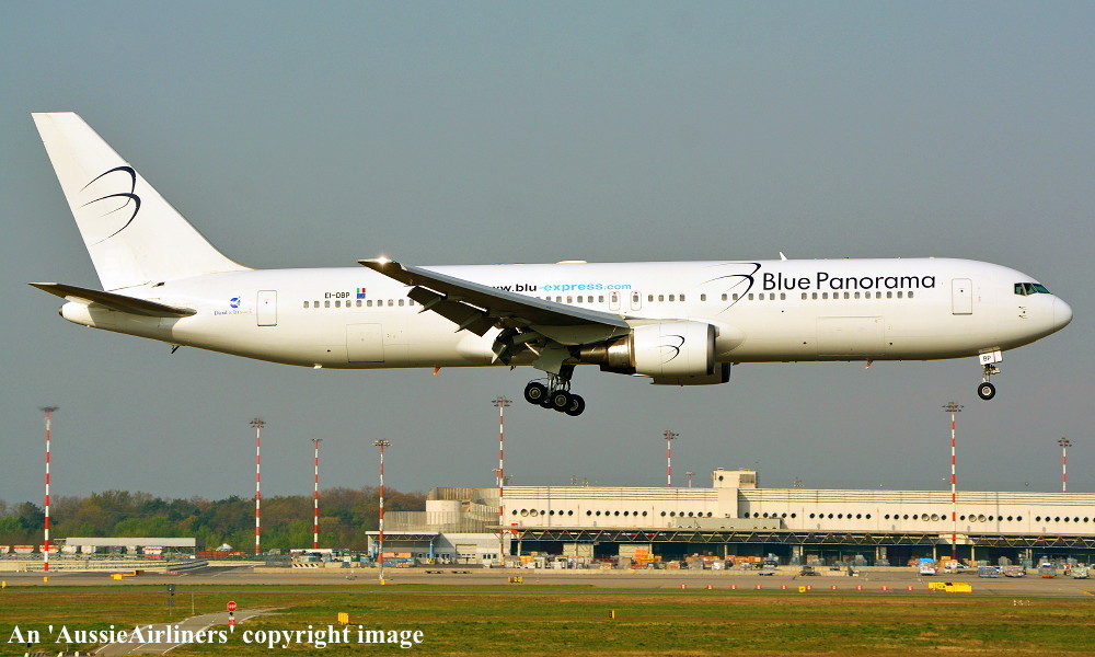 EI-DBP. Blue Panorama - in the all-white livery at Malpensa Airport, April 12, 2015. (M. Finelli Copyright Image 4650-139.) |