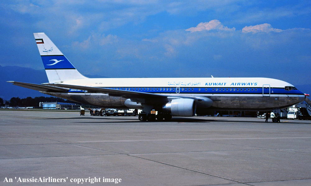 9K-AIA. Kuwait Airways - 'Al-Riggah' in the standard livery at an unknown airport, August 1991. (R. N. Smith Collection Copyright Image 4655-169.) |