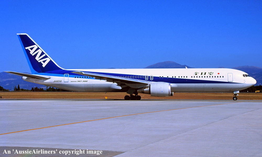 JA8256. ANA - in the standard livery at an unknown airport, December 1989.
