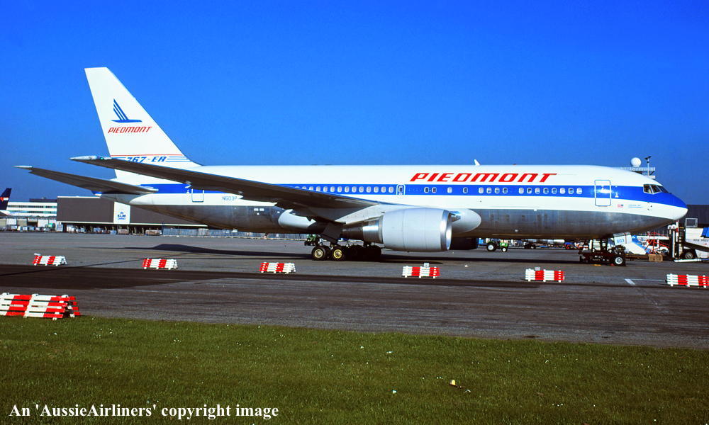 N603P. Piedmont - in the standard livery at Amsterdam Schipol Airport, date unknown. (R. N. Smith Collection Copyright Image 4655-192.) |