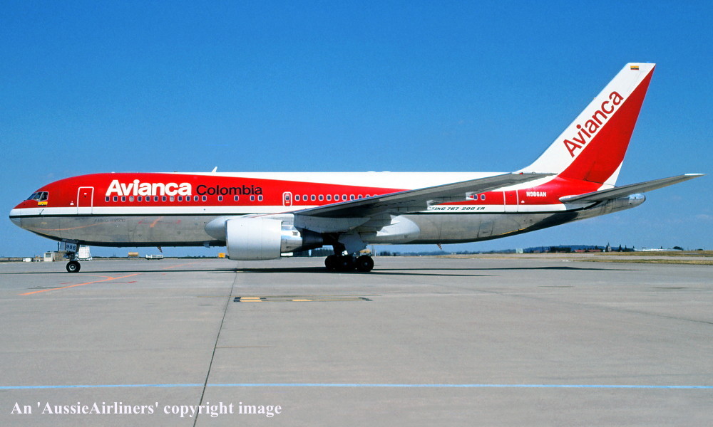 N986AN. Avianca Colombia - in the standard livery at an unknown airport, August 1996.