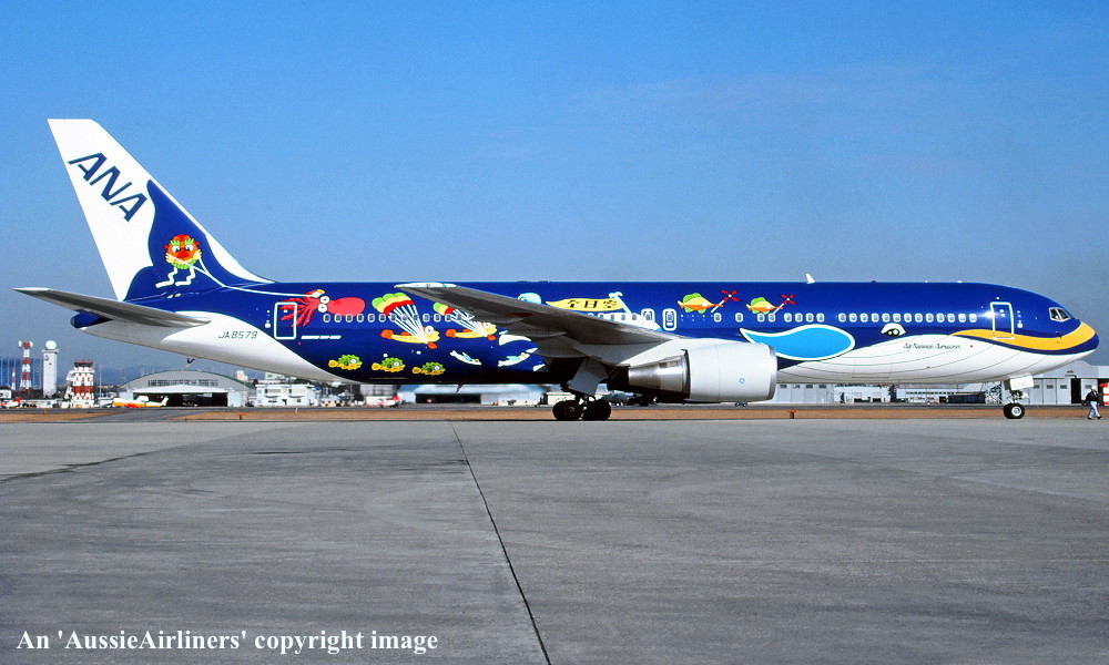JA-8579. ANA All Nippon Airways - in the 'whale' livery at an unknown airport, November 1995.