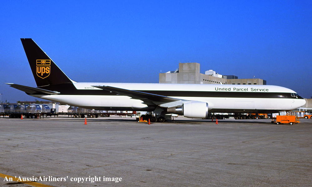 N301UP. UPS United Parcel Service - in the standard at an unknown airport, December 1995.