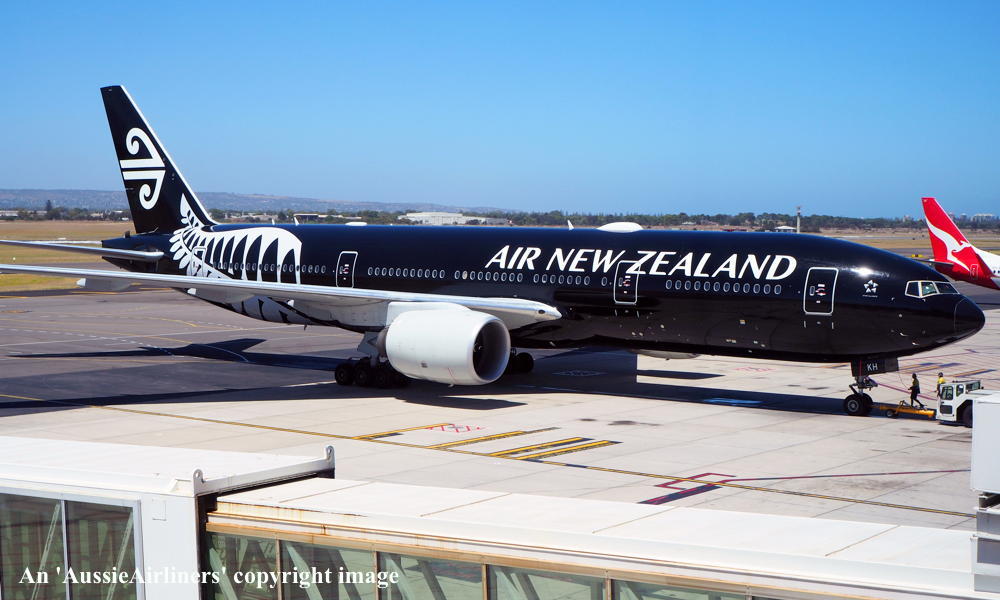 ZK-OKH. Air New Zealand - in the black livery at Adelaide West Beach Airport, January 22, 2019. (T. Haynes Copyright Image 4670-113.) |