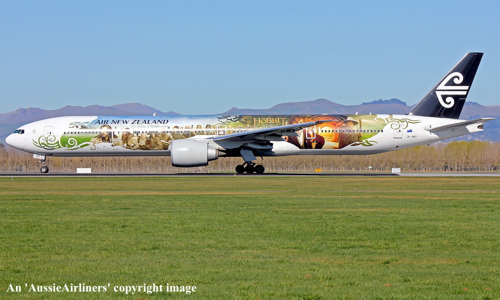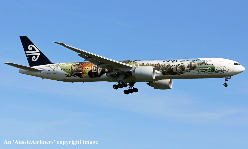 The Air New Zealand Board approved the purchase of four Boeing 777-300ERs - August 03, 2007 It also approved options on a further three aircraft to be leased from Air Lease Corporation This aircraft was owned by Air New Zealand Rolled out of the production hangar at Everett (Paine Field) - October 10, 2011 First flown from Everett (Paine Field) - October 28, 2011 Powered by General Electric GE-90-115B engines Accepted by Air New Zealand at Everett (Paine Field) - November 07, 2011 Entered onto the New Zealand Aircraft Register as ZK-OKP - November 08, 2011 Registered to Air New Zealand Limited, Auckland Departed Everett (Paine Field) on the delivery flight to New Zealand as NZ6391 - November 08, 2011 It arrived at Auckland on completion of the delivery flight from the United States - November 09, 2011 Operated its first revenue service Auckland - Melbourne (Tullamarine) as NZ125 - November 14, 2011 Withdrawn from service at Auckland for the 'Hobbit' promotional livery to be applied - November ?, 2012 Rolled out at Auckland with 'The Hobbit' livery - November 27, 2012 Operated a special charter flight Auckland - Wellington as NZ6691 - November 27, 2012 This flight was to drop the 'Hobbit' cast and film crew at Wellington for the film's premiere Operated Auckland - Auckland with a low-level flyover of Wellington - November 28, 2012 This flight was to celebrate the premiere showing of the Hobbit movie in Wellington that day Ferried Auckland - Singapore (Paya Lebar) for maintenance and repainting as NZ6018 - August 15, 2016 The repaint involved removing the Hobbit livery and applying the 'Silver Fern' livery Ferried Singapore (Paya Lebar) - Auckland in the new corporate livery - September 27, 2016 Returned to service Auckland - Los Angeles as NZ6 - September 27, 2016 Operated its last revenue service (freight) Los Angeles - Auckland as NZ1005 - July 20, 2020 It was withdrawn from service and stored at Auckland due to the Covid19 pandemic Departed Auckland (21:40 local) on the ferry flight to the United States as NZ6006 - August 12, 2020 It arrived at Los Angeles (14:10 local) on completion of the ferry flight - August 12, 2020 Ferried Los Angeles (14:25 local) - Victorville (14:58 local) as NZ6006 - August 13, 2020 Placed into long-term storage at Victorville due to the Covid19 pandemic Current with Air New Zealand |