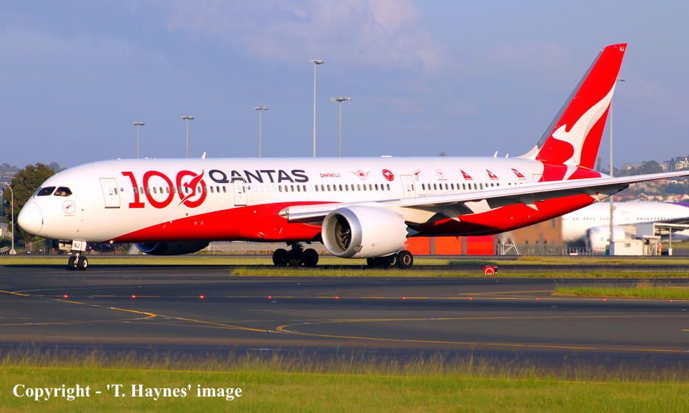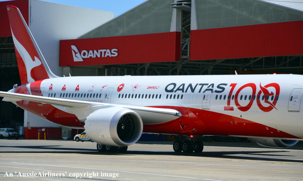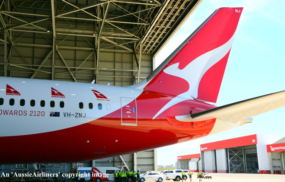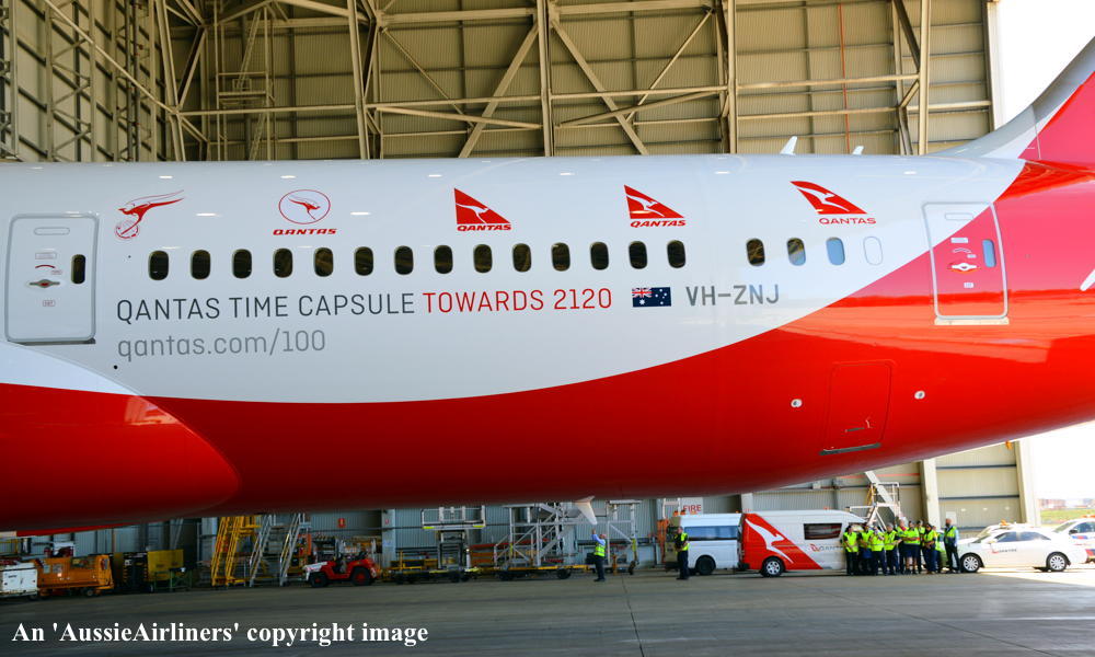 VH-ZNJ. Qantas Spirit of Australia - 'Longreach' in the special 'Anniversary' livery at Sydney Kingsford Smith Airport, September 19, 2022. (T. Haynes Copyright Image 4680-159.) |