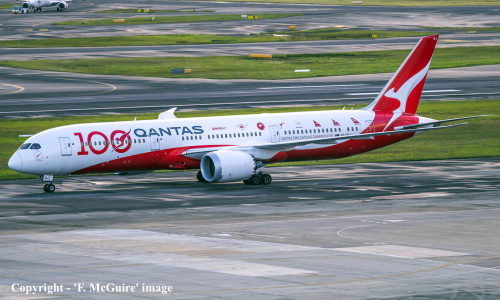 VH-ZNJ. Qantas Spirit of Australia - 'Longreach' in the special 'Anniversary' livery at Sydney Kingsford Smith Airport, January 23, 2023. (F. McGuire Copyright Image 4680-158.) |