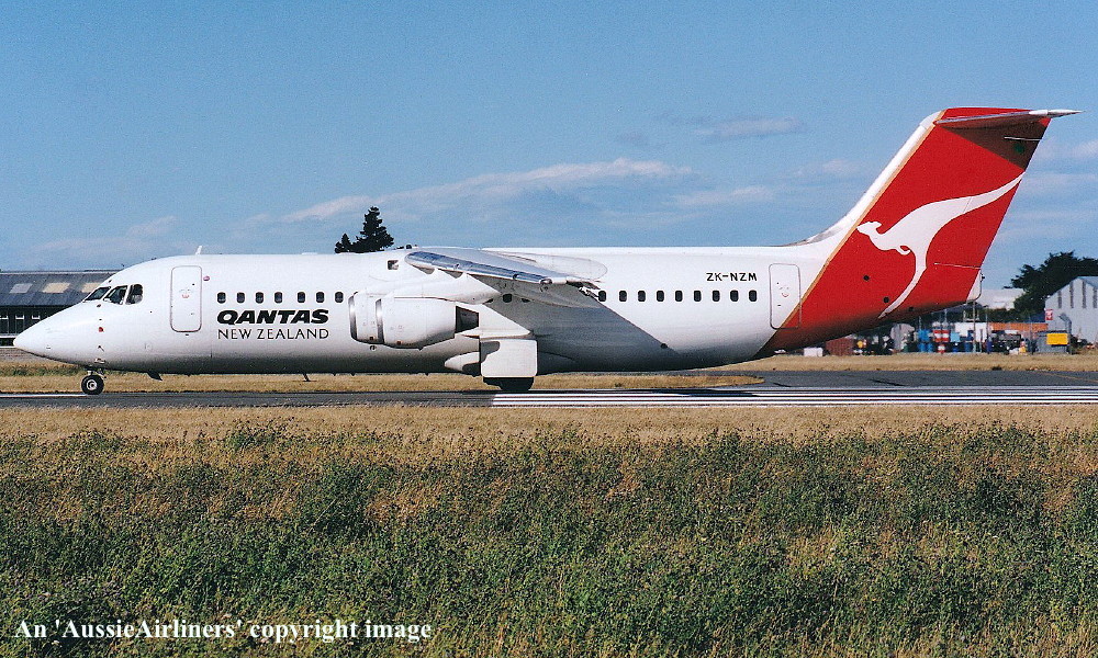 ZK-NZM. Qantas New Zealand - in the standard livery at Auckland Airport, August 2000. (J. Mounce Copyright Image 0414-424.) |