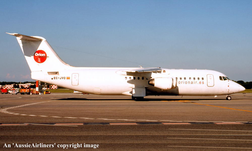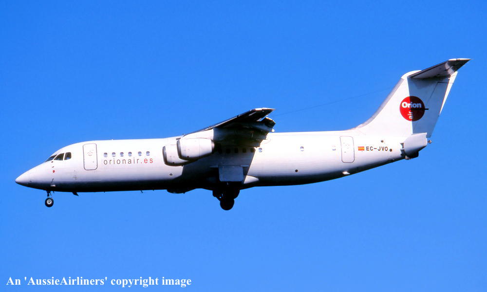 This aircraft was built at the British Aerospace Hatfield plant for East-West Airlines order First flown at Hatfield as 'G-5-179' - October 21, 1990 Entered onto the Australian Aircraft Register as VH-EWM - November 30, 1990 Registered to East-West Airlines (Operations) Pty Ltd Configured to seat 94 economy class passengers Departed Hatfield (United Kingdom) on the delivery flight to Australia - December 01, 1990 It arrived at Tamworth on completion of the delivery flight from the United Kingdom - December 05, 1990 Delivery route: Hatfield - Italy - Egypt - Yemen - Oman - India - Thailand - Singapore - Indonesia - Darwin - Tamworth Operated its first revenue service Brisbane - Mackay - Cairns as EW352 - December 11, 1990 Transferred to Ansett Australia after Ansett purchased East-West Airlines - May 27, 1993 Operated its final revenue service - July ?, 1993 It was the last Bae146 to carry the 'East-West' livery before being repainted into the 'Ansett Australia' livery Registered to Ansett Transport Industries (Operations) Pty Ltd, Melbourne - March 17, 1994 Operated its final revenue service Cairns - Brisbane as AN159 - September 13, 2001 Ansett ceased all operations due to bankruptcy - September 13, 2001 It was offered for immediate sale having flown 27,568 hours - October 25, 2001 The aircraft had flown 28,070 hours with 23,211 cycles - June 27, 2002 Ferried Brisbane - Melbourne (Tullamarine) as AN4041 (Captain S. Henderson; F/O M. O'Halloran) - July 4, 2002 It was placed in long-term storage at Melbourne (Tullamarine) Test flown at Melbourne (Captains R. Goulet, G. Goodson) - October 20, 2005 Departed Melbourne (Tullamarine) on the ferry flight to the United Kingdom in 'all-white' livery - November 30, 2005 Ferry route: Melbourne - Alice Springs - Broome - Surabaya - Medan - Colombo - Karachi - Bahrain - Amman - Iraklion - Nice - Exeter Flight crew: Captains G. Goodson, R. Goulet; Engineer S. Giuliano Stored at Exeter for possible sale / lease by FlyBe Aviation Services It was reported that the aircraft would be going to Pan Air Lineas Aereas SA, Spain (T.N.T. company) - June 13, 2006 Cancelled from the Australian Aircraft Register - June 15, 2006 Entered onto the British Aircraft Register as G-EEWM (CofR G-EEWM/R1) - June 15, 2006 Registered to Ansett Australia Ltd Leased to Orionair, Valencia, Spain as the registered operator Test flown at Exeter for its British Certificate of Airworthiness - July 11, 2006 Acceptance flight for Orionair flown - July 15, 2006 Ferried Exeter - Gerona - Valencia in an 'all-white' livery - July 16 - 17, 2006 The aircraft had flown 28,109:02 hours with 23,228 cycles Cancelled from the British Aircraft Register - July 17, 2006 Entered onto the Spanish Aircraft Register as EC-JVO - July 17, 2006 Operated by Flightline for Orionair and maintained by Pan Air Leased to Compagnie Aerienne du Mali for six months - March 2007 Ferried to Birmingham where 'Compagnie Aerienne du Mali' titles were applied - March 27, 2007 Departed Birmingham on delivery to Bamako, Mali - March 30, 2007 Departed Bamako, Mali on return to the lessor - May 2007 Repainted into Orionair titles and seen as such at Madrid - June 04, 2007 Wet-leased to new Italian carrier Vola Salerno / Global Aviation Network - August 2008Ferried to Solerno ready to commence operations for Vola Salerno - August 01, 2008 Operated inaugural revenue service Salerno - Barcelona as OR1121 - August 02, 2008 Vola Salerno abruptly ceased operations blaming Orionair in part for its demise - December 18, 2008Returned to Orionair as EC-JVO Orionair ceased operations - January 2009 Current status - ? |