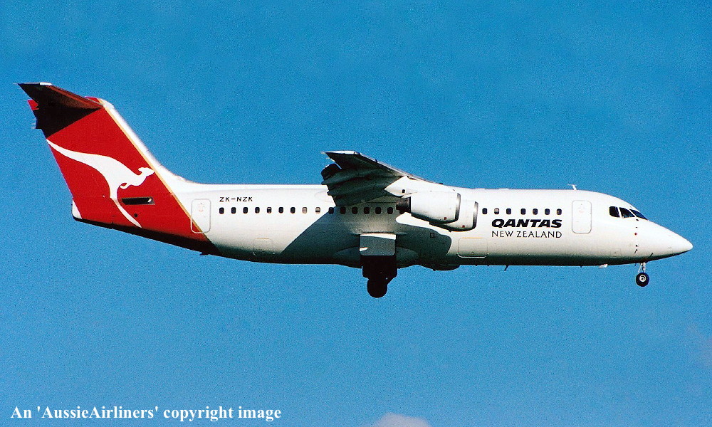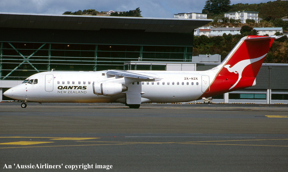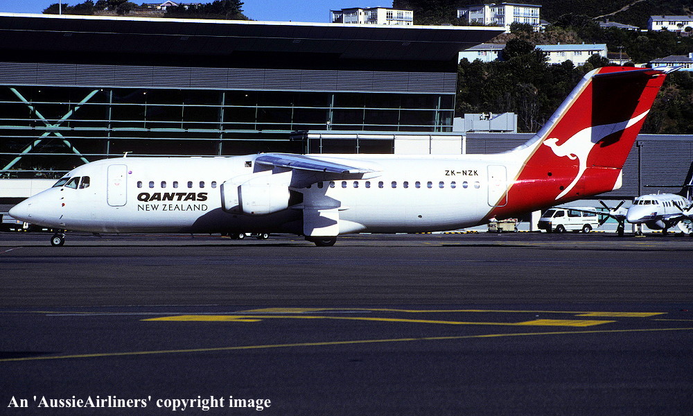 ZK-NZK. Qantas New Zealand - in the standard livery at Wellington Airport, February 2001. (M. Richardson Copyright Image 0414-187.) |