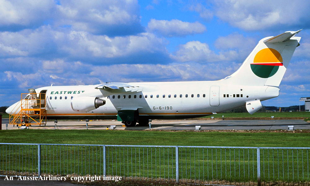 G-6-190. East West - in the standard livery at Hatfield Airport, May 1991. (J. Woods Copyright Image 0414-670.) |