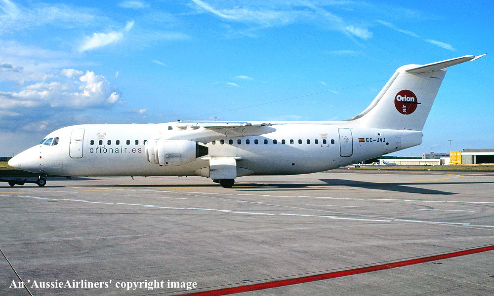 This aircraft was built at the British Aerospace Hatfield plant for the East-West Airlines order First flown at Hatfield as 'G-6-195' - May 23, 1991 Entered onto the Australian Aircraft Register as VH-EWR - June 12, 191 Registered to East-West Airlines (Operations) Pty Ltd, Tamworth It was configured to seat 94 economy class passengers Departed Hatfield on the delivery flight to Australia - June 12, 1991 It arrived at Tamworth on completion of the delivery flight from the United Kingdom - June 17, 1991 Delivery route: Hatfield - Italy - Egypt - Yemen - Oman - India - Thailand - Singapore - Indonesia - Darwin - Tamworth Operated its first revenue service Sydney (Kingsford Smith) - Coolangatta - June 23, 1991 Rolled out with 'Tasmania, Australia's Best Holiday' and 'Wild About Tassie' titles - May 01, 1992 Withdrawn from East-West service - November 04, 1992 The aircraft was then repainted into the Ansett Australia 'flag' livery at Melbourne (Tullamarine) Entered service with Ansett Express - November 25, 1992 Tansferred to Ansett Australia - April 01, 1993 Registered to Ansett Transport Industries (Operations) Pty Ltd - March 17, 1994 Operated the final Ansett 'Brisbane - Proserpine - Brisbane' service as AN964/965 (Captain Brown) - March 27, 1997 Operated the final Ansett services to Coffs Harbour and Ballina - March 25, 2000 Ansett ceased operations due to bankruptcy - September 13, 2001 Operated 'last' revenue service Canberra - Brisbane as AN976 - September 14, 2001 Commenced operations for the new 'Ansett' flying Brisbane - Townsville as AN4406 - October 09, 2001 Operated charters for the Australian Defence Force Townsville - Darwin - Dili - Darwin - Townsville Offered for immediate sale having flown 26,370 hours - October 25, 2001 Operated its final A.D.F. charter Dili - Darwin as AN4347 - November 02, 2001 Operated the final new 'Ansett' revenue service Cairns - Brisbane as AN399 - November 03, 2001 Operated its final revenue service as a Brisbane - Wagga Wagga - Brisbane charter flight - November 22, 2001 It was placed in open storage at Brisbane The aircraft had flown 26,867 hours with 21,854 cycles - June 27, 2002 Ferried Brisbane - Melbourne (Tullamarine) as AN4041 - August 05, 2002 Flight crew: Captain S. Henderson; F/O M. O'Halloran Placed in long-term storage at Melbourne (Tullamarine) The 'Ansett Australia' livery was removed at Melbourne (Tullamarine) during the 'C-Check' - September 2004 Test flown at Melbourne (Captains R. Goulet, G. Goodson) - October 04, 2005 Departed Melbourne (Tullamarine) on the ferry flight to the United Kingdom in 'all-white' livery - November 16, 2005 Ferry route: Melbourne - Broome - Darwin - Denpasar - Penang - Colombo - Karachi - Bahrain - Amman - Iraklion - Nice - Exeter Flight crew: Captains G. Goodson, R. Goulet Stored at Exeter for possible sale / lease by FlyBe Aviation Services It was reported that the aircraft would be going to Pan Air Lineas Aereas SA, Spain (T.N.T. company) Cancelled from the Australian Aircraft Register - June 07, 2006 Entered onto the British Aircraft Register as G-EEWR (CofR G-EEWR/R1) - June 08, 2006 Registered to Ansett Australia Ltd Leased to Orionair, Valencia, Spain as the registered operator Test flown at Exeter for British Certificate of Airworthiness - June 21, 2006 The Orionair acceptance flight was flown Exeter - Exeter - July 07, 2006 Ferried Exeter - Gerona - Valencia in an all-white livery - July 07 - 10, 2006 The aircraft had flown 26,913:35 hours with 21,873 cycles Cancelled from the British Aircraft Register - July 12, 2006 Entered onto the Spanish Aircraft Register as EC-JVJ - July 12, 2006 Operated by Flightline for Orionair and maintained by Pan Air Utilised on various short-term contracts Orionair ceased operations - January 2009 Current status - ? |