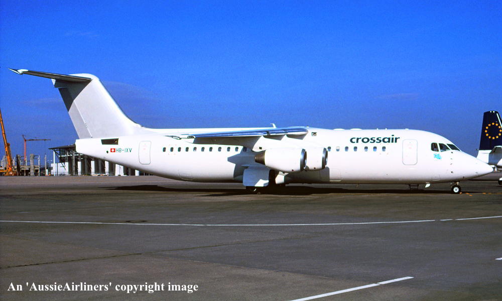 HB-IXV. Crossair - in the standard livery at an unknown airport, date unknown. (R. N. Smith Collection Copyright Image 0414-764.) |