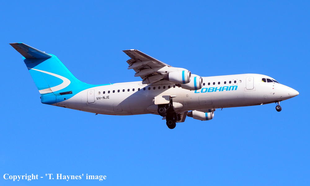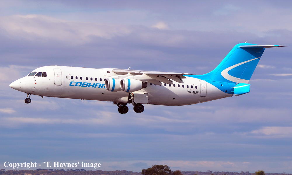 This aircraft was built by British Aerospace at Hatfield, England - 2001 It was allocated the airframe number 'G-6-384' Entered onto the British Aircraft Register as G-CFAH (CofR G-CFAH/R1) - January 15, 2001 Registered to BAe Systems (Operations) Limited, Woodford, Stockport First flown at Hatfield - May 15, 2001 Leased to Citiflyer Express Ltd, Gatwick - June 08, 2001 Registered to Citiflyer Express Ltd, Gatwick (CofR G-CFAH/R2) - June 19, 2001 Withdrawn from service and returned to BAe Systems at the end of the lease - April 27, 2002 Leased to British Airways CitiExpress as the registered operator - November 30, 2002 Registered to British Airways CitiExpress Ltd, Isle of Man (CofR G-CFAH/R3) - July 15, 2003 Withdrawn from service by British Airways CitiExpress Ltd - January 17, 2006 Returned to BAe Systems at the end of the lease - January ?, 2006 Cancelled from the British Aircraft Register - January 25, 2006 Entered onto the Swiss Aircraft Register as HB-IYQ - January 25, 2006 Leased to Swiss Global Airlines, Switzerland as the registered operator Withdrawn from service by Swiss Global Airlines and returned to BAe Systems - April 30, 2017 Sold to Triangle Regional Aircraft Leasing - June 12, 2017 Cancelled from the Swiss Aircraft Register - June 12, 2017 Entered onto the British Aircraft Register as G-CFAH (CofR G-CFAH/R4) - June 12, 2017 Registered to Triangle Regional Aircraft Leasing Leased to Cobham Aviation Services Australia - December 22, 2017 Registered to National Jet Express Pty Ltd, Adelaide (CofR G-CFAH/R5) - December 22, 2017 Departed Cranfield (England) on the delivery flight to Australia - January ?, 2018 It arrived at Adelaide (West Beach) on completion of the delivery flight from the United Kingdom - January 18, 2018 Cancelled from the British Aircraft Register - January 22, 2018 Entered onto the Australian Aircraft Register as VH-NJE - January 24, 2018 Registered to National Jet Express Pty Ltd, Adelaide Leased to Cobham Aviation Services as the registered operator Operated its final Cobham service Prominent Hill - Port Agusta as NC217 - February 26, 2022 Ferried Port Agusta - Sydney (Bankstown) as NC504 - February 28, 2022 Registered to IAP Engineering Pty Ltd, Fairlight, Sydney - May 03, 2022 Leased to Pionair Australia Pty Ltd, Condell Park, Sydney as the registered operator It was observed stored at Sydney (Bankstown) - January 27, 2023 Current status - ? |