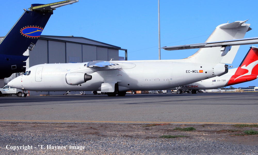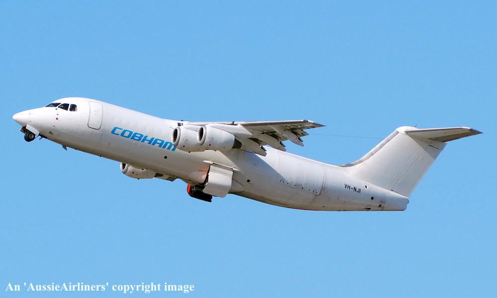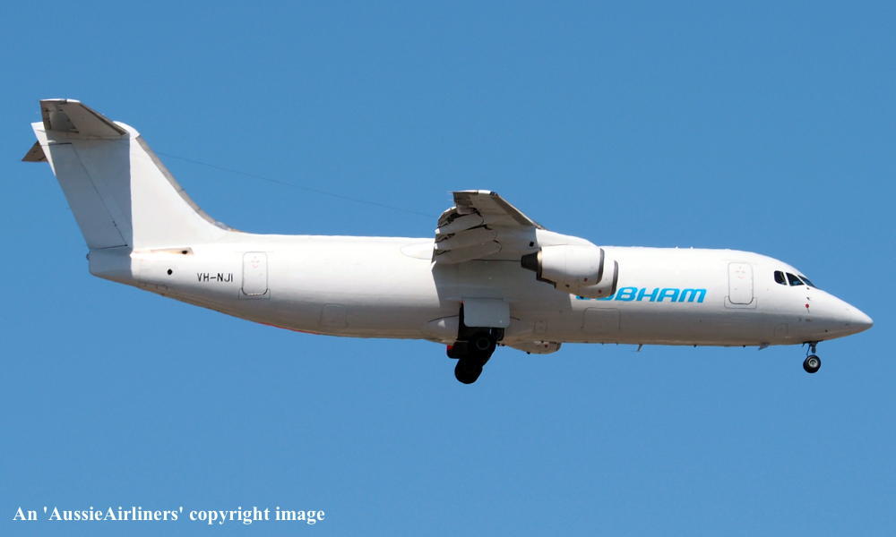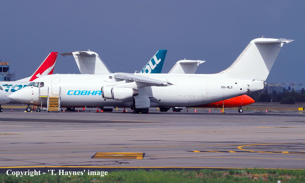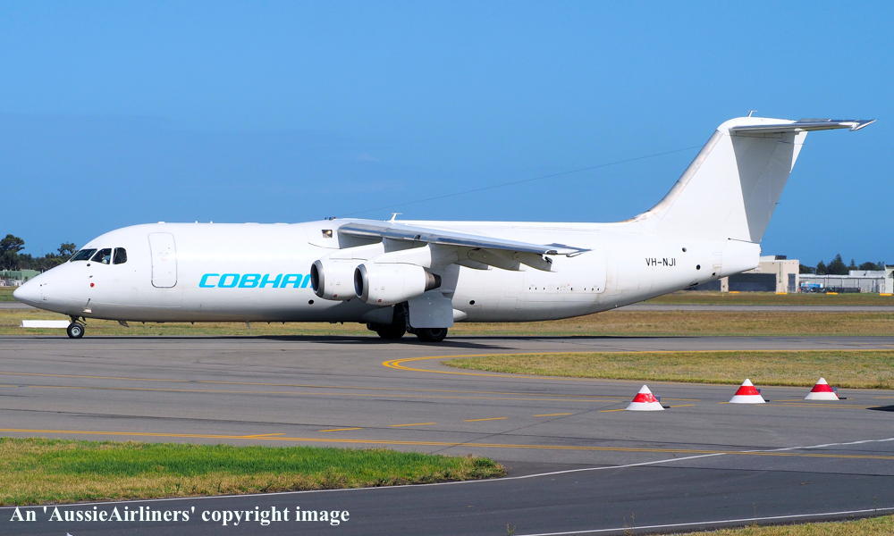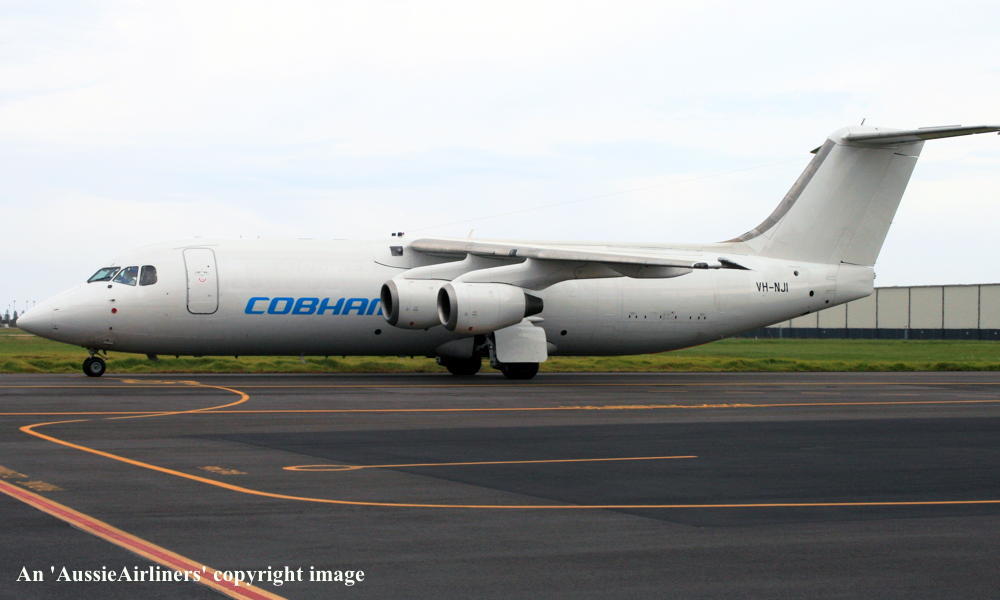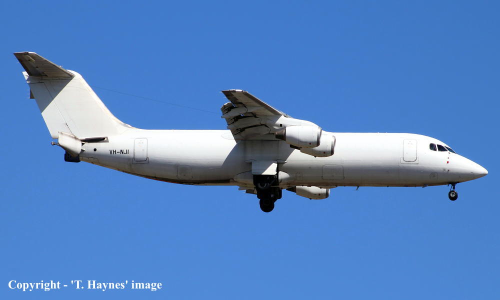 VH-NJI. British Aerospace 146-300. c/n E3154. Was also registered as: G-BRXI; G-TNTF; EC-712; EC-FFY; OO-TAS; EC-MCL. |