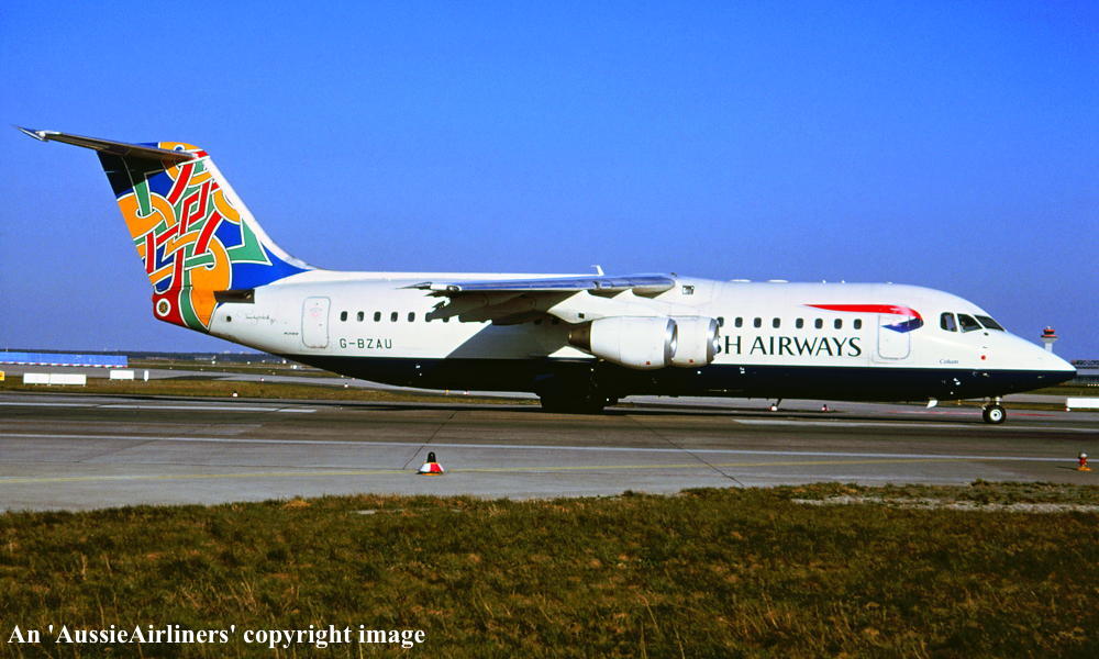 G-BZAU. British Airways - in the 'Colum' livery at an unknown airport, date unknown. (R. N. Smith Collection Copyright Image 0414-415.) |