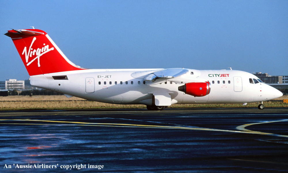 EI-JET. CityJet - in the standard livery with 'Virgin' tail at an unknown airport, January 1994. (R. N. Smith Collection Copyright Image 0414-295.) |