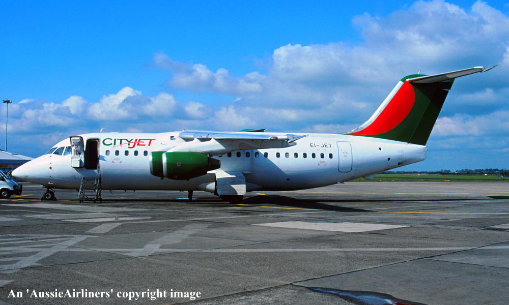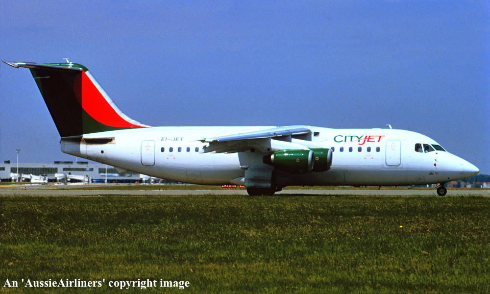 EI-JET. CityJet - in the revised livery at Dublin Airport, June 1996. (R. N. Smith Collection Copyright Image 0414-642.) |