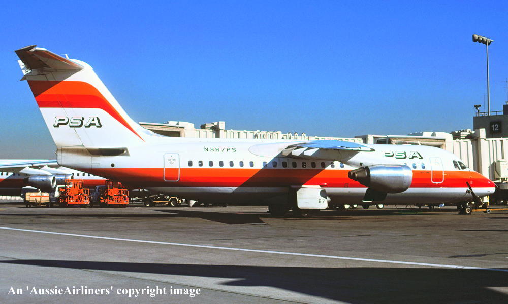 N367PS. PSA - in the standard livery at Los Angeles Airport, December 1987. (R. N. Smith Collection Copyright Image 0414-757.) |