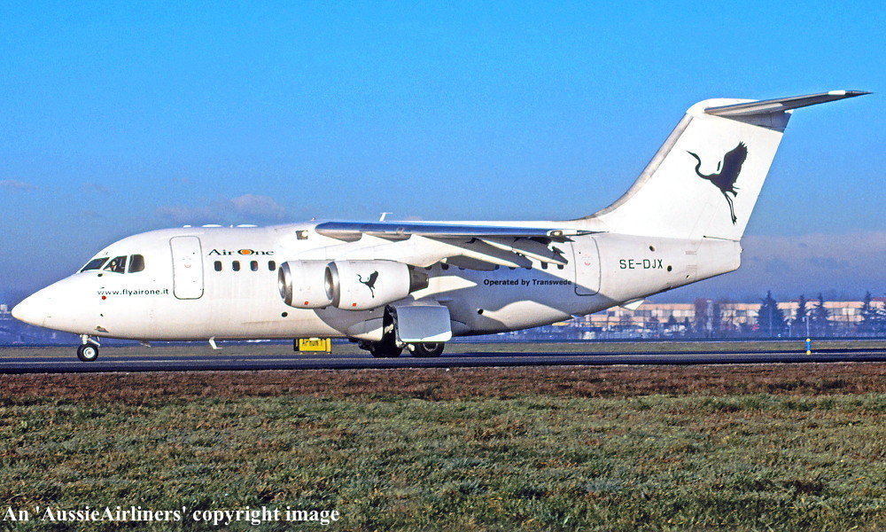 SE-DJX. Air One - in the white livery at Milan Airport, February 2007. (R. N. Smith Collection Copyright Image 0414-305.) |