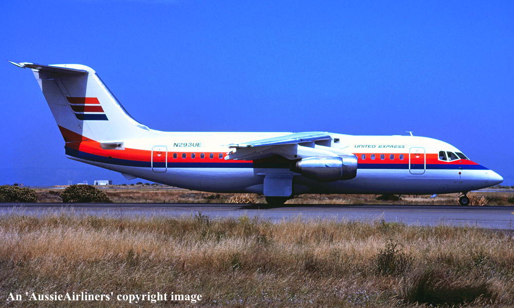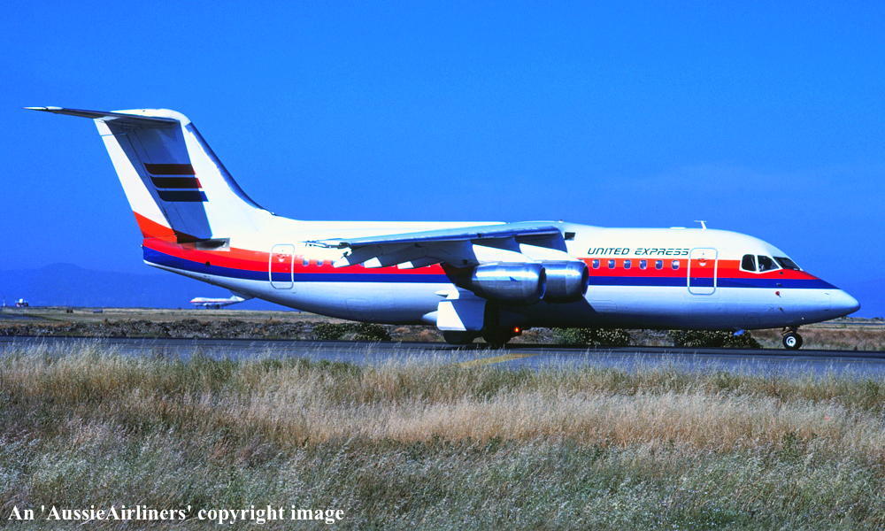 N293UE. United Express - in the standard livery at San Francisco Airport, July 1985. (P. Sansom Copyright Image 0414-650.) |
