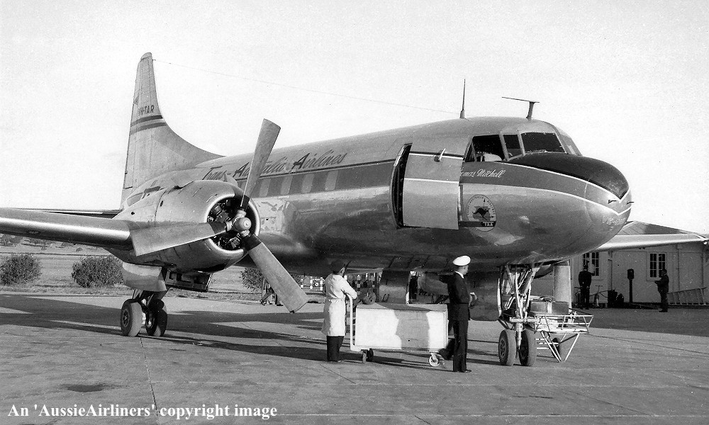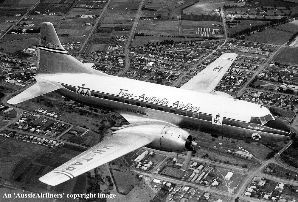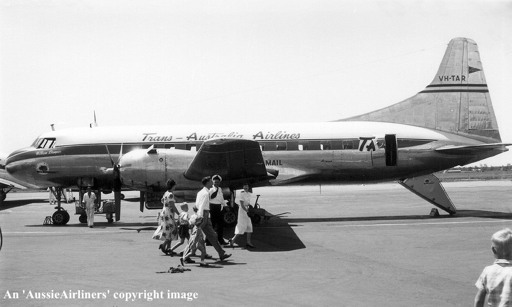 VH-TAR. TAA Trans-Australia Airlines - 'Thomas Mitchell' in the revised livery with the additional 'Royal Crest' at an unknown location, date unknown. (E. D. Daw Collection Copyright Image 1029-020.) |