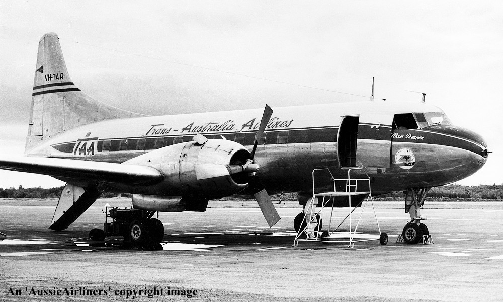 VH-TAR. TAA Trans-Australia Airlines - 'William Dampier' in the revised livery at Melbourne Essendon Airport, date unknown. (E. D. Daw Collection Copyright Image 1029-022.) |