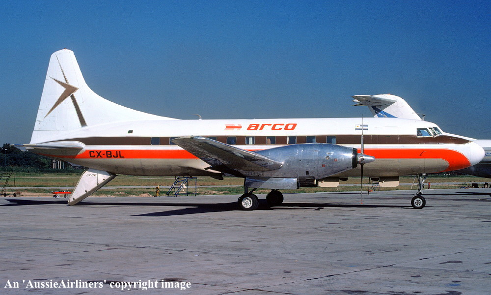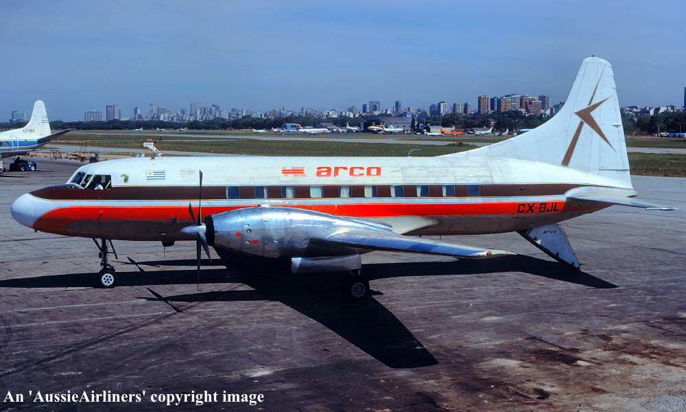 CX-BJL. Arco - in the standard livery at Buenos Aires Airport, January 1979. (R. N. Smith Collection Copyright Image 1029-103.) |