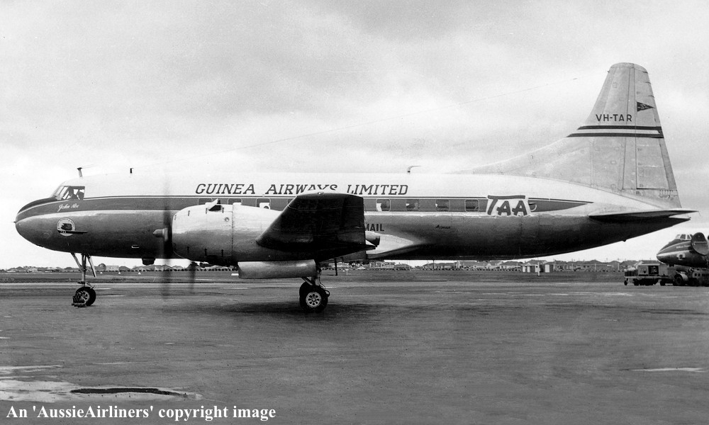 VH-TAR. Guinea Airways Limited - 'John Roe' in the T.A.A. livery at Melbourne Essendon Airport, November 1958. (E. Coates Collection Copyright Image 1029-115.) |